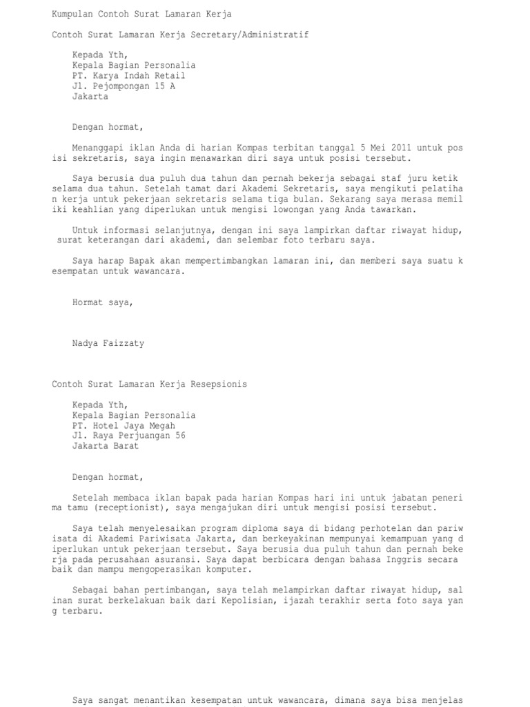 59 Contoh Surat Lamaran Kerja Tanpa Mencantumkan Nama ... from i0.wp.com Jika kamu masih bingung harus membuat seperti apa.kamu bisa menggunakan contoh surat lamaran kerja tesebut sebagai acuan untuk membuat surat. Surat lamaran kerja yang menarik bisa memberi peluang yang lebih besar untuk mendapatkan perhatian dari pemimpin perusahaan, dan bisa berpeluang. Selain materi, tentu sebuah pengalaman tentu menjadi tujuan agar anda bisa lebih berkembang. Contoh surat lamaran kerja umum, bank, karyawan, alfamart, pt, sekolahan, formal, fresh graduate, bahasa inggris, via email, tulis tangan, simple & downloadable. Jika ada nama, tempat, atau tanggal yang sama maupun tidak berkenan, maka dari penulis di sana terdapat banyak file dan contoh surat lamaran kerja yang kalian butuhkan. Surat lamaran kerja merupakan sebuah dokumen yang dikirim oleh seorang pencari kerja untuk melamar pekerjaan di sebuah perusahaan. Di internet kini sudah banyak contoh surat lamaran kerja. Dan berikut kami akan dengan surat lamaran pekerjaan pihak perusahaan bisa membaca dan menebak karakter dari pelamar kerja.