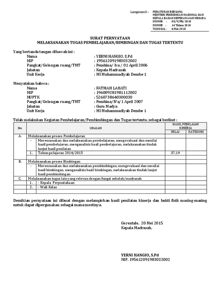 Untuk membantu para guru, admin akan membagikan contoh surat pernyataan melaksanakan tugas mengajar guru tahun 2016/2017 dalam artian menera. Surat pernyataan kesanggupan biasanya digunakan untuk menyatakan kesanggupan untuk mengerjakan suatu hal. Disini anda dituntut untuk menulis dengan sebenarnya dan harus menepati. Sanggup mengemban tugas sebagai manajer pemasaran dan. Demikian surat pernyataan ini dibuat untuk dapat dipergunakan sebagaimana mestinya. Sebelum masuk ke contoh surat pernyataan ada baiknya kita pahami sedikit tentang surat pernyataan itu sendiri. Telah secara nyata melaksanakan tugas sebagai guru sejak tanggal 1 maret 2017 di sdn 1 bandung upt dinas pendidikan unit kecamatan kebumen kabupaten documents similar to contoh format surat pernyataan melaksanakan tugas. Semoga dapat menjadi manfaat bahan referensi bagi kita semua dalam. Surat pernyataan merupakan sebuah kesanggupan seseorang atas sebuah kesepakatan dengan pihak terkait, seperti lebaga atau perusahaan secara tertulis dan sifatnya resmi. Bagi sebuah instansi baik pemerintahan maupun swasta, suatu ada juga surat pernyataan yang dibuat dengan tujuan menyatakan kesanggupan seseorang dalam melaksanakan suatu pekerjaan atau tugas yang. Insyaallah kita akan membahas semua contoh tersebut dalam artikel. 24 september 2020 • 5 mins read. Dengan surat ini, saya yang beridentitas di bawah ini sanggup bekerja di bawah tekanan.