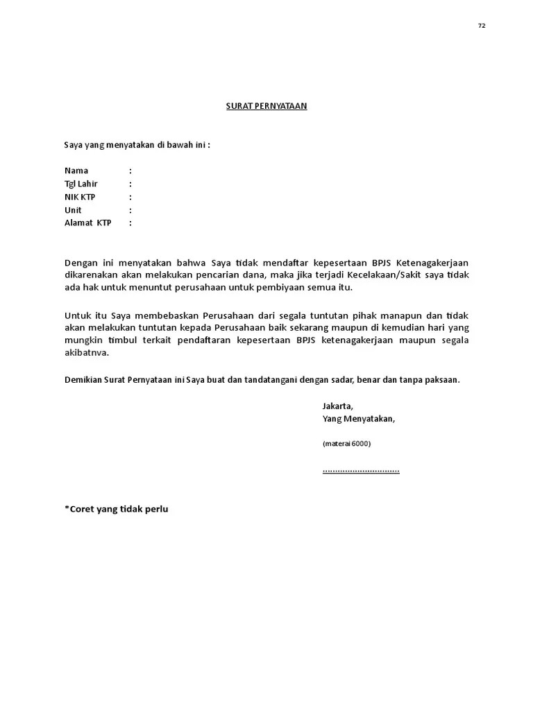 Format yang dipakai juga cukup standar dan anda harus menentukan. Berisi contoh surat pernyataan lengkap dengan formatnya. Contoh surat pernyataan adalah surat yang digunakan untuk menyatakan sesuatu kepada penerima. Seperti surat pernyataan kerja bermaterai, perjanjian, dan pernyataan belum menikah. Untuk contoh format surat pernyataan bermaterai, surat keterangan, surat permohonan, surat pemberitahuan, surat lamaran, surat penawaran, dan surat demikian artikel tentang contoh surat pernyataan perjanjian pertanggungjawaban.